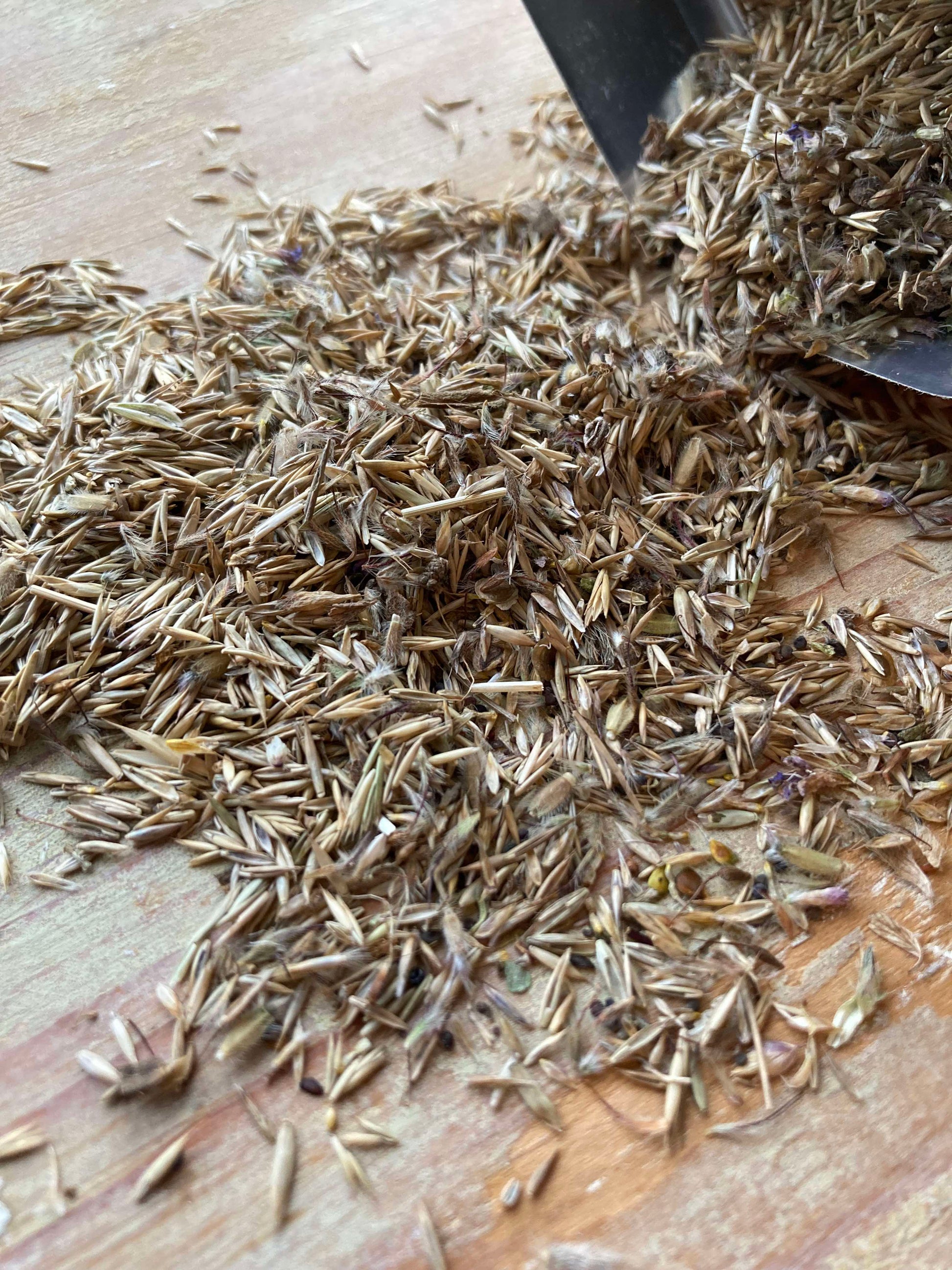 Allt ängsfrö är från växter odlade på vildsamlat svenskt frö av oss. Blandningen innehåller 11% ängsfröer 89% gräsfröer